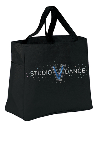 This durable tote comes in a rainbow of colors and is a tremendous value. 600 denier polyester canvas Large main section with small interior self-fabric pockets Exterior side pocket Web handles Dimensions: 12'h x 12'w x 6.5'd Approx. 936 cubic inches