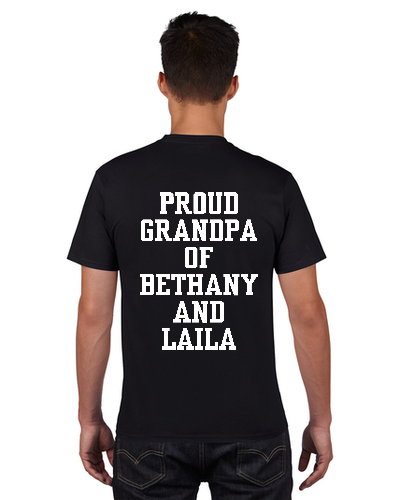 Show your dancer some love with a custom fan T-shirt. Studio logo is prominently displayed center chest with your choice of text on the back. Text will be sized to fit.